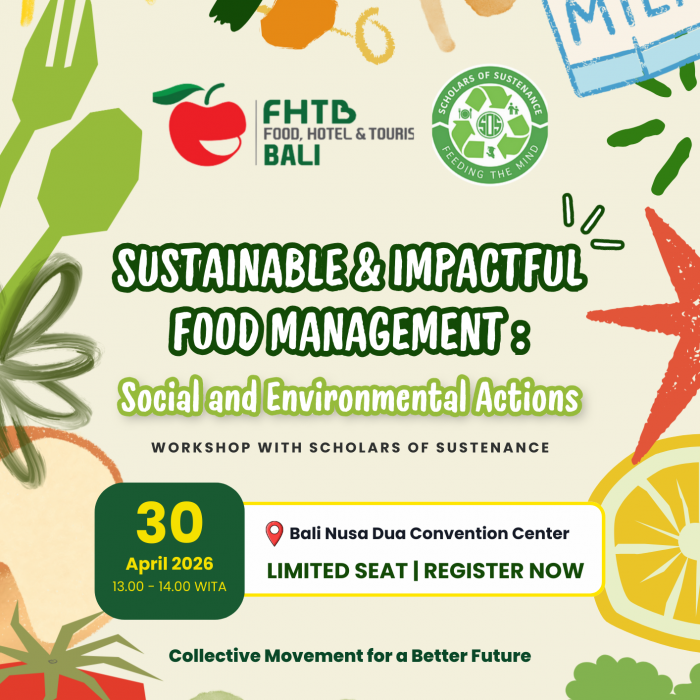 The Sustainable Food Management Workshop by Scholars of Sustenance Bali at FHTB 2026 is an interactive and purpose-driven session designed to deepen understanding of responsible food practices within the hospitality and food industry. This workshop highlights the importance of sustainability across food operations, addressing both environmental responsibility and social impact.